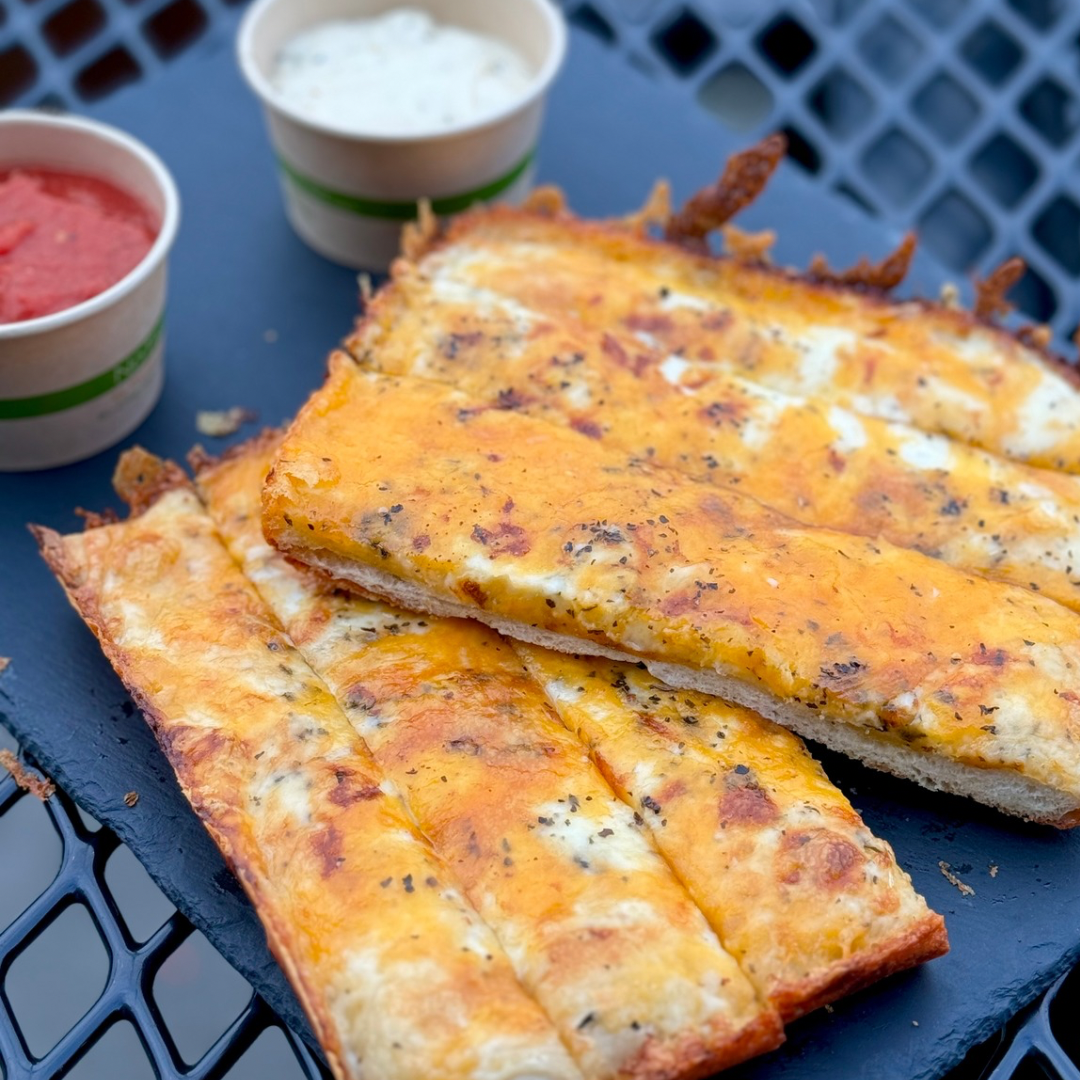 PIZZA DOUGH BAKED WITH MOZZARELLA CHESE BLEND, CHEDDAR CHEESE, AND ITALIAN SEASONING SERVED WITH CHOICE OF MARINARA OR ALFREDO SAUCE